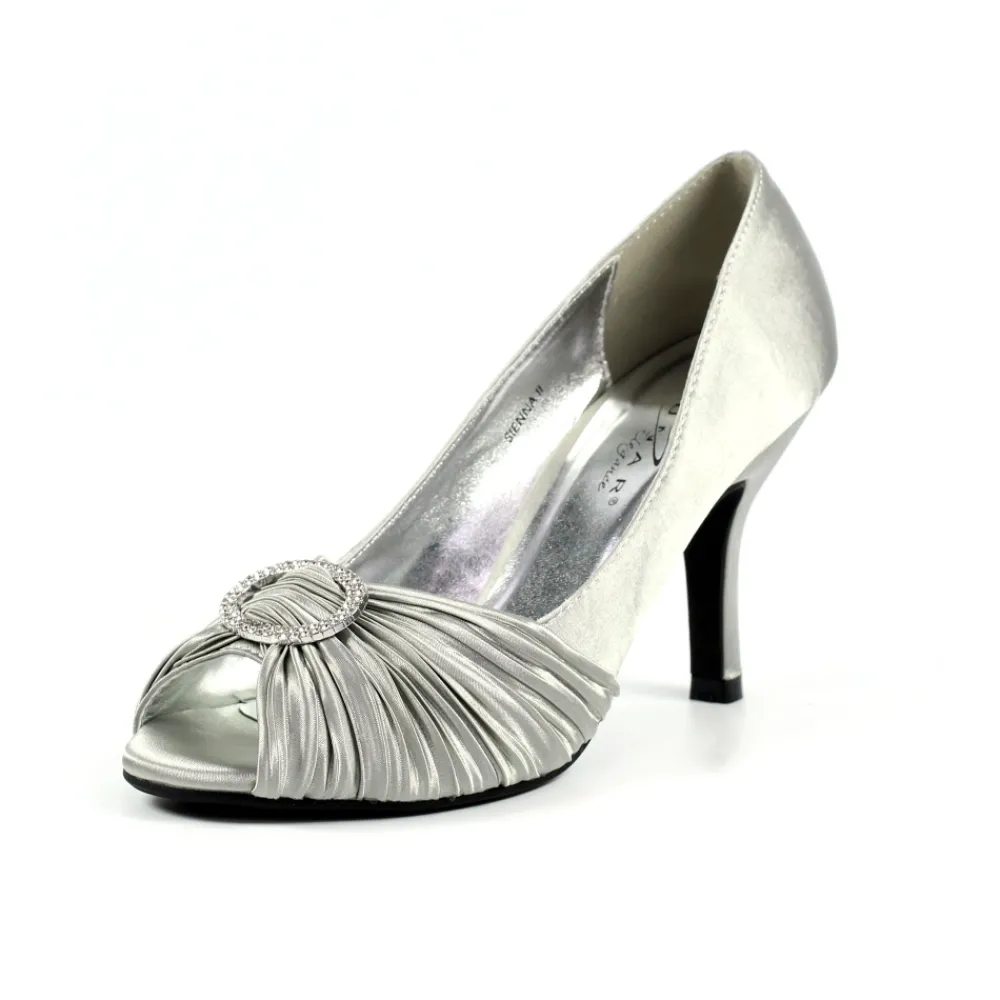 Our ‘Sienna’ peep toe heel is our all-time best selling evening style, it’s not hard to see why. The heel height is perfect and the intricate pleated detail with a diamante accent gives the shoe an elegant touch. The perfect option for the mother of the bride and wedding guests.